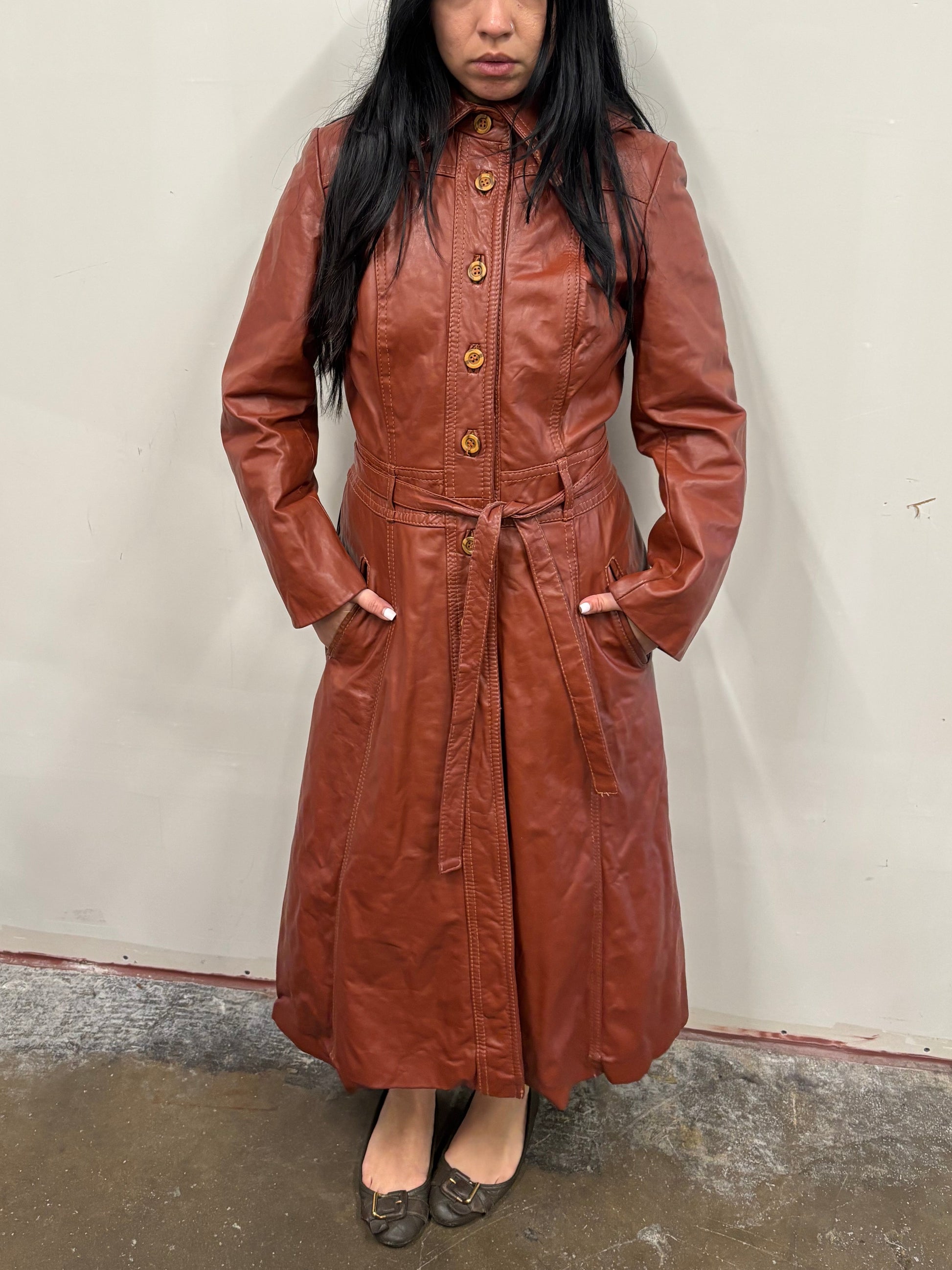 Vintage Red Leather Trench